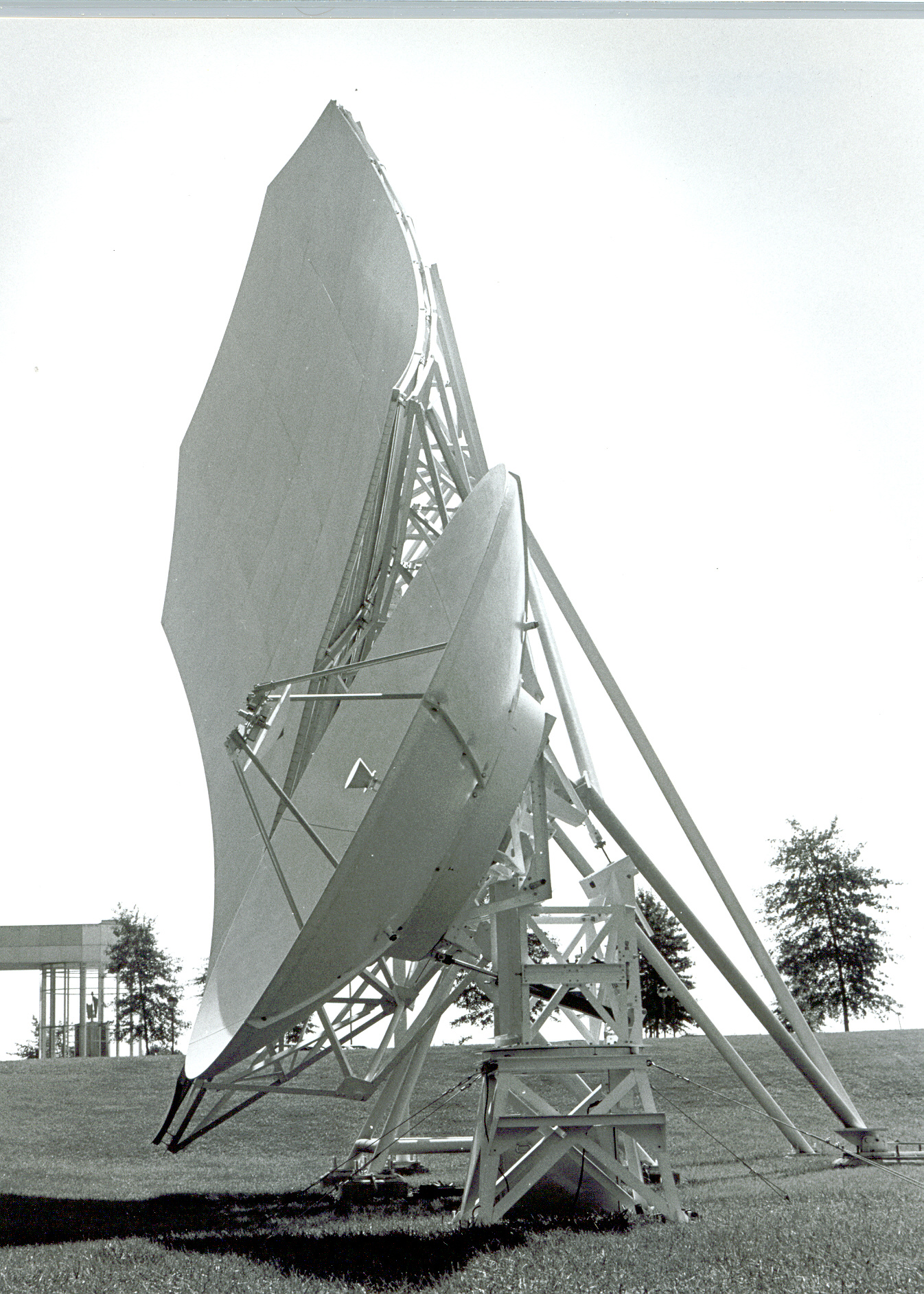 Front field '75. 4m dish, Torus; Labs North entrance at back.jpg